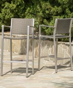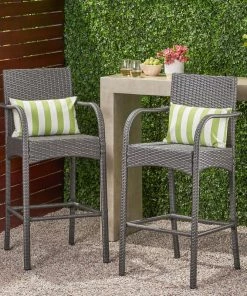 Best Pirce โญ GDFStudio GDF Studio Capral Outdoor Gray Wicker Bar Stools, Set Of 2 โ