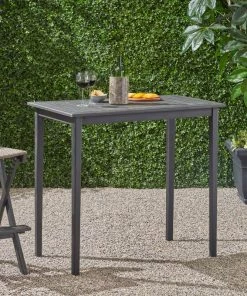 Best Pirce ๐คฉ GDFStudio Teresa Outdoor Acacia Wood Rectangle Bar Table, Dark Gray โจ