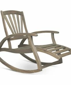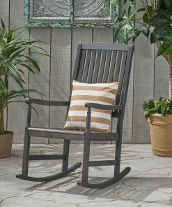 Hot Sale ✨ GDFStudio Beulah Outdoor Acacia Wood Rocking Chair, Light Gray Finish, Dark Gray ⭐