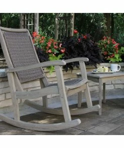 Cheap 🎁 Outdoor Interiors Gray Wash Eucalyptus And Driftwood Gray Wicker Rocking Chair 🤩