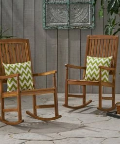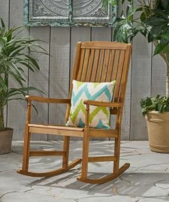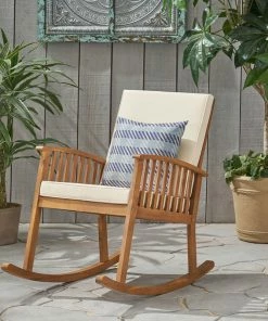 Discount 💯 GDFStudio Beulah Outdoor Acacia Wood Rocking Chair, Brown Patina Finish, Cream ❤️
