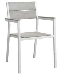 Promo ๐งจ LexMod Maine Dining Armchairs, Outdoor Aluminum, Set Of 2, White/Light Gray โจ
