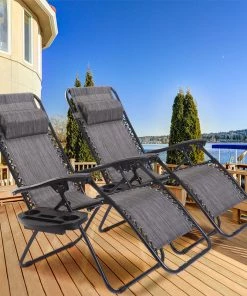 Cheapest ๐ Costway 2PC Folding Zero Gravity Reclining Lounge Chairs Patio W/Utility Tray ๐