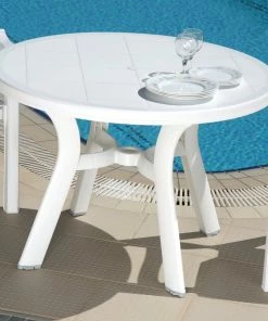 Buy โค๏ธ Atlin Designs Modern 36″ Round Resin Patio Dining Table In White ๐งจ