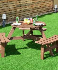 Budget โจ Costway Patio 6 Person Outdoor Wood Picnic Table Bench Set Dining Seat Garden ๐