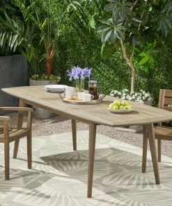 New ๐ GDFStudio Candance Outdoor Acacia Wood Expandable Dining Table, Gray ๐