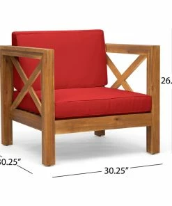 Wholesale ๐ GDFStudio Indira Outdoor Acacia Wood Club Chairs With Cushions, Set Of 2, Red โค๏ธ