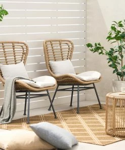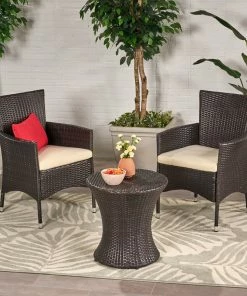 Best Sale ๐ GDFStudio Daisy Outdoor Modern Boho 2 Seater Wicker Chat Set, Brown ๐ฏ