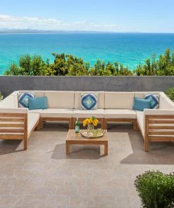 Coupon ๐ GDFStudio Emma Outdoor 9 Seater Acacia Wood Sectional Sofa Set, Beige ๐