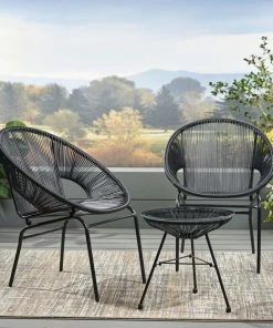 Flash Sale โญ GDFStudio Alamo Outdoor Modern 2 Seater Faux Rattan Chat Set, Black โ๏ธ