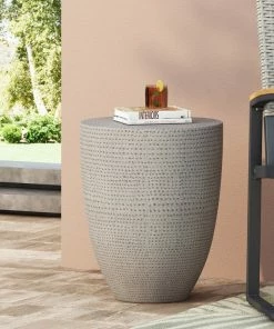 Discount โ๏ธ GDFStudio Alcona Outdoor Lightweight Concrete Side Table, Concrete Finish โ