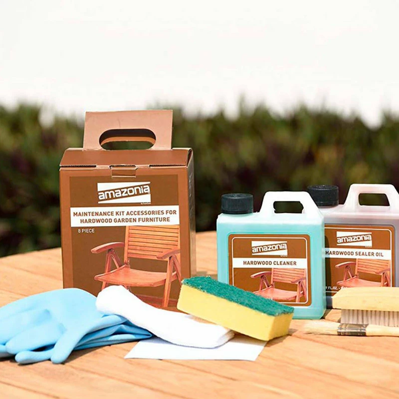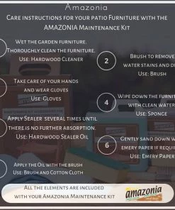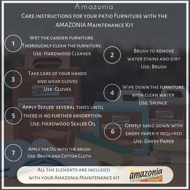 ใSturdy & Durable DesignใAmazonia products can be left outside throughout the year and can withstand all types of weather, but it is recommended that they are treated with a wood sealer oil to maintain the golden-reddish finish.