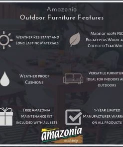 ใHigh Quality 100% FSC Certified WoodใAt Amazonia, we offer the highest quality and the most sustainable and natural products for your home and patio. Our wood can withstand prolonged weathering and heavy impacts in the living environment. Hardware is made of galvanized steel.