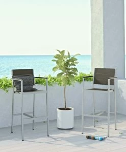 Hot Sale ๐ฅ LexMod Shore Bar Stool Outdoor Aluminum Set Of 2, Silver/Gray ๐