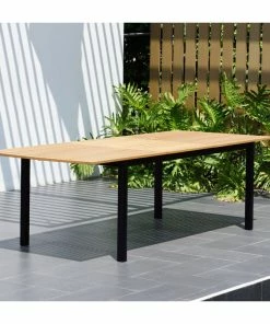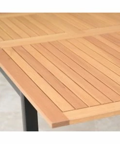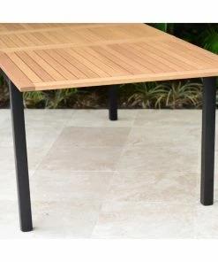 - Table is made of High Quality Powder-Coated Aluminum & 100% FSC Certified Eucalyptus Wood in Teak Finish.