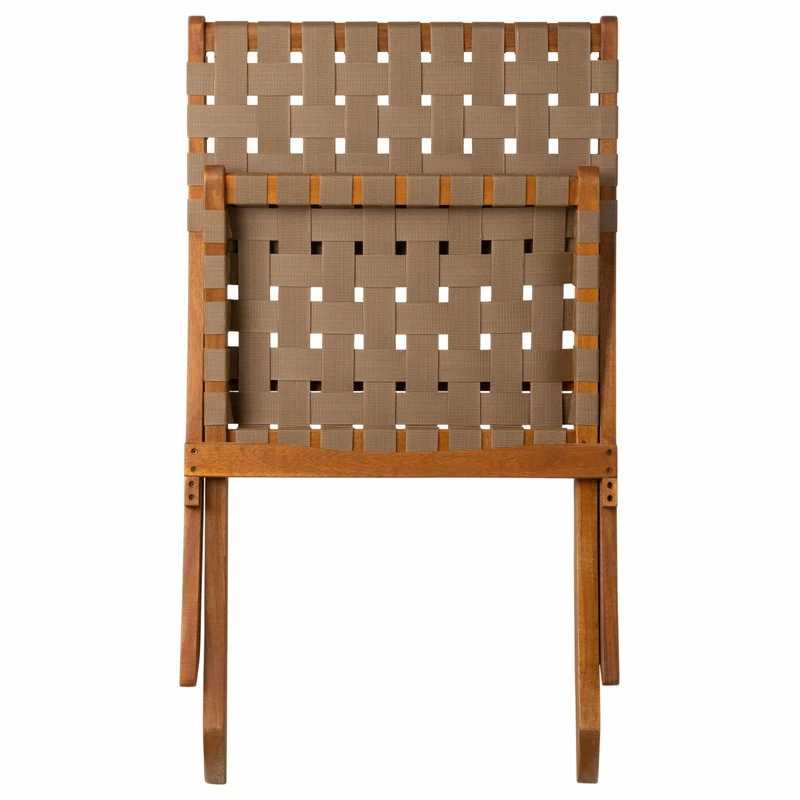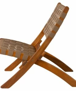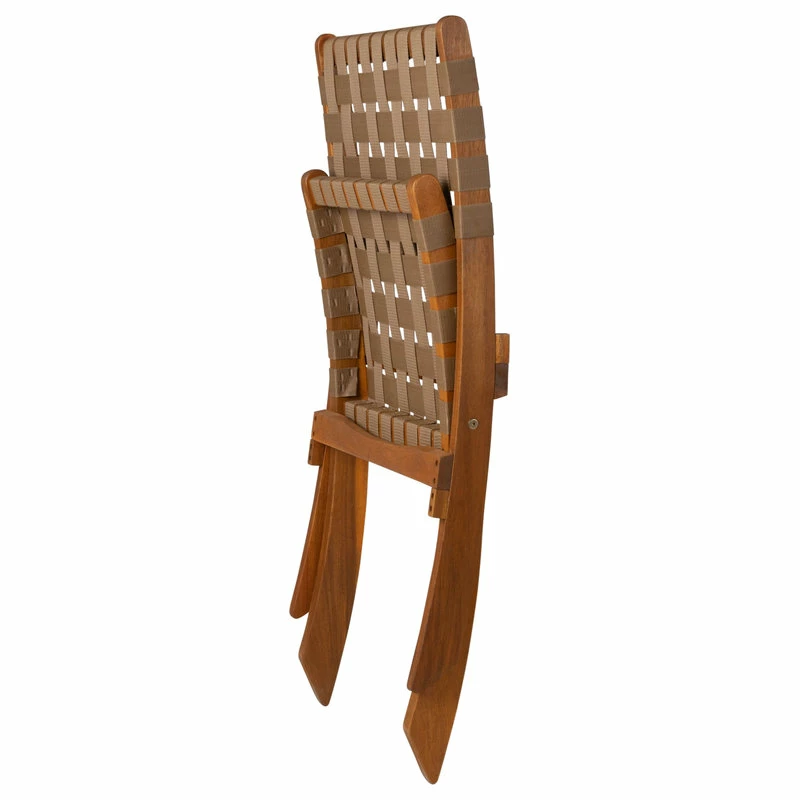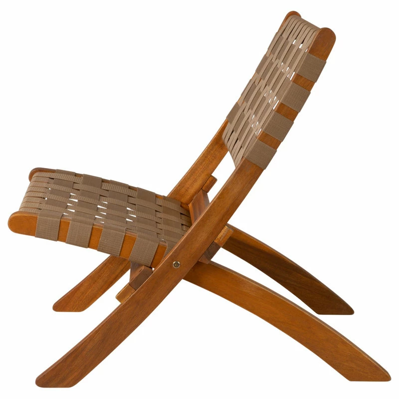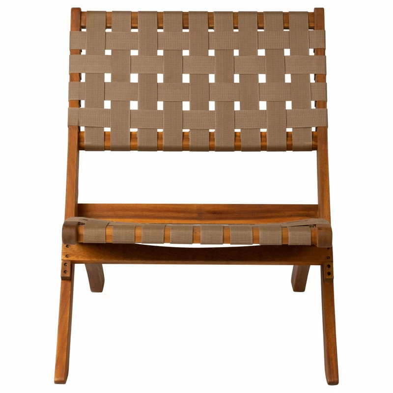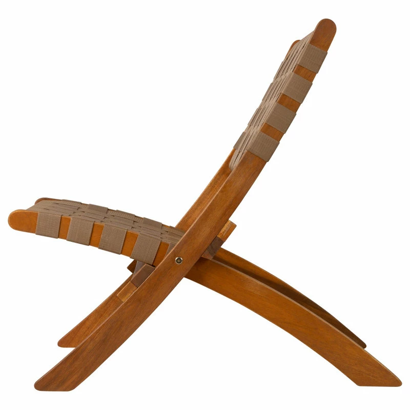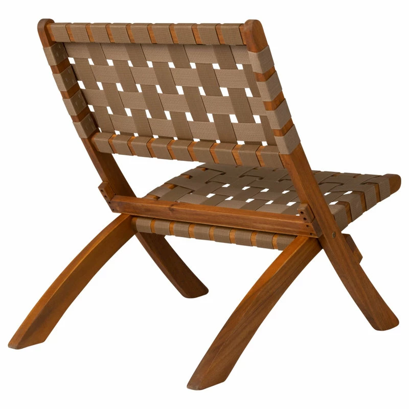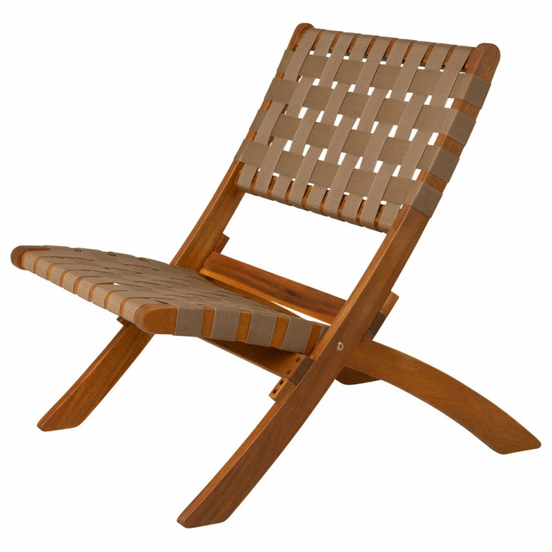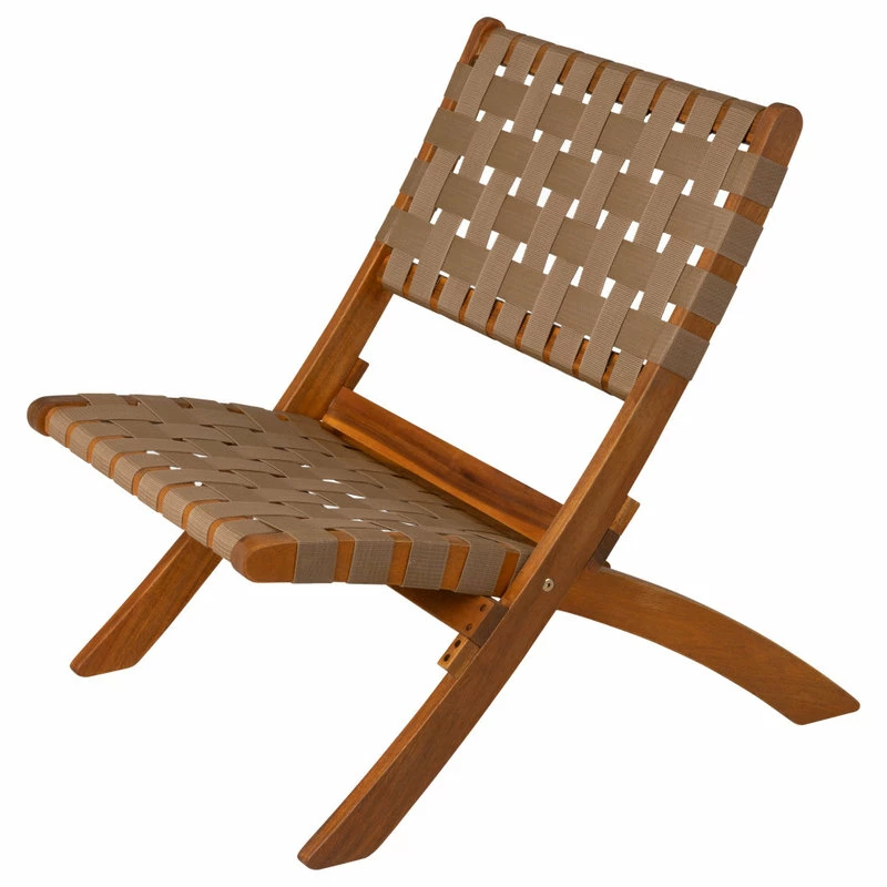The Sava Folding Chair is low-slung, portable seating with a solid acacia wood frame and woven webbing seat and back. The attractive teak-toned finish is the perfect accent for any patio or indoor living area, and also conveniently folds for storage or transport. The comfortable design is perfect for relaxing poolside or creating casual seating arrangements. The Sava Chair can be used all season long with basic care and maintenance, and may be easily stored away in the off-season thanks to its folding design.