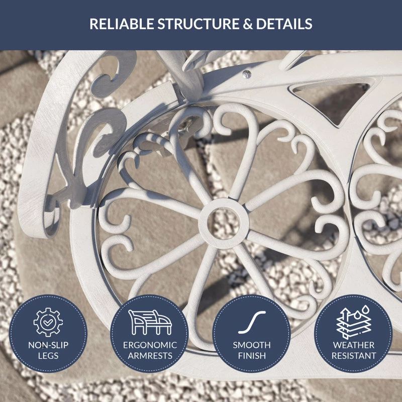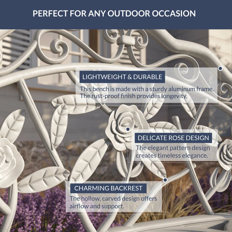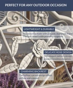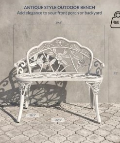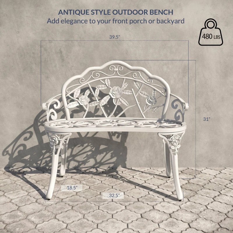 Belleze make your garden or path complete with an antique rose style bench to sit and rest on while enjoying the great outdoors. Made of cast iron and lightweight yet durable metal this bench is sturdy yet comfortable enough to relax on in the sun. The seat is composed of metal to provide optimal support. The bench an antique look that will fit perfectly with any outdoor decor and allow it to maintain its stylish look. Add a touch of style to your backyard or garden with this beautiful bench.
