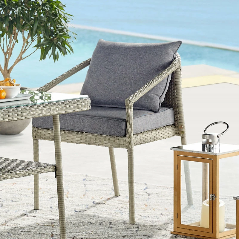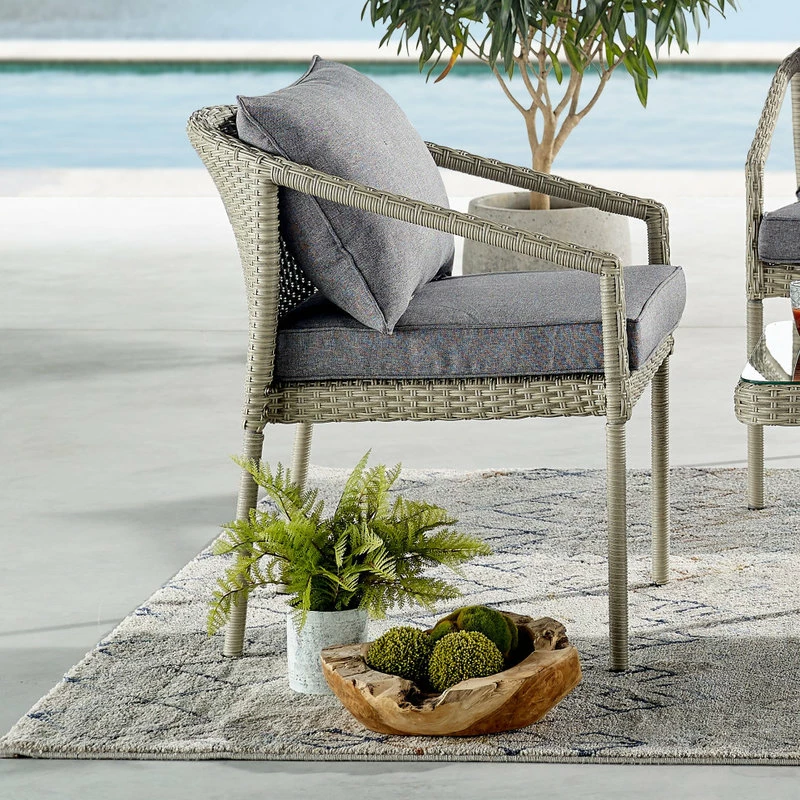 SKU: AWWA01AA Categories: Outdoor Chairs, Outdoor Dining Chairs, Outdoor Furniture Tags: Armchair, Chair with Cushions, Indoor/outdoor, Mixed materials, Modern, Outdoor furniture, Outdoor seating, Patio furniture, Patio set, Set of chairs, Weather resistant, Weatherproof, Wicker furniture