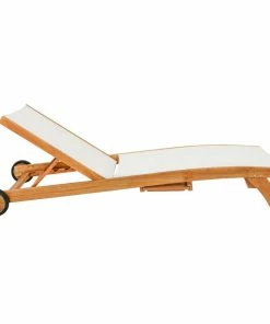 The lounger is fashioned from solid grade A teak wood with premium stainless steel hardware and Batyline sling material. There’s no need for cushions since the sling material is comfortable and water easily drains through. The back has 4 adjustable positions for extra comfort. Batyline is made in France by Ferrari.