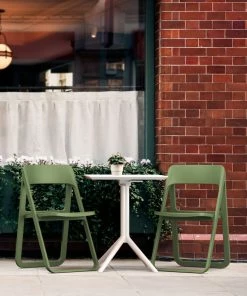 Dream folding chair is made from marine grade polypropylene. Easy folding structure. Stackable after folding. Great for outdoor spaces, patios and decks.