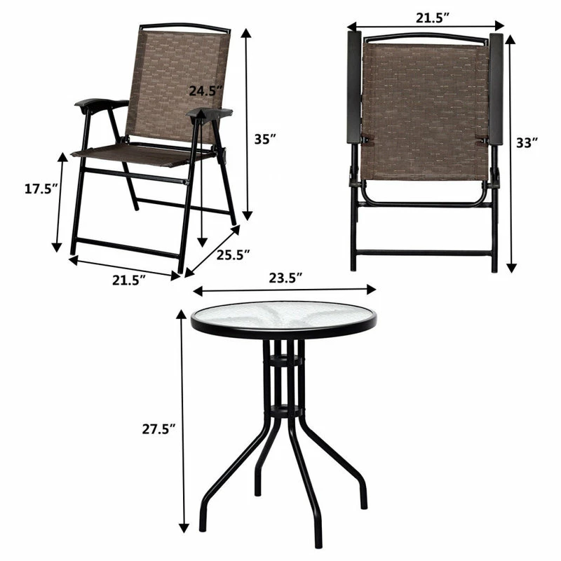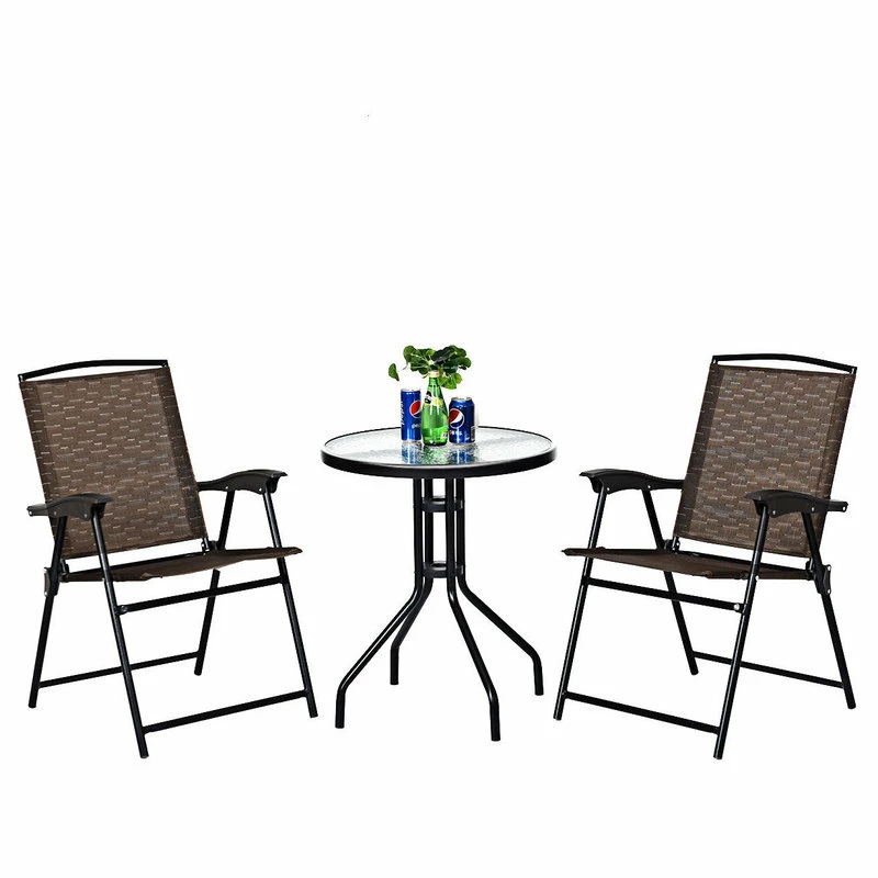 - This is 3 pieces outdoor table chairs set, including 1 round table and 2 folding chairs.