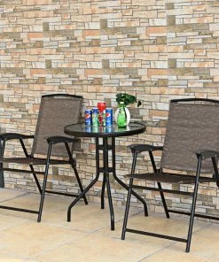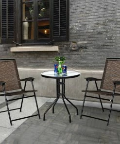 Enjoy outdoor leisure time with our beautiful yet practical 3pc bistro table set. Bistro sets are perfect for outdoor and indoor use. And it offers you a quiet, cozy space to host a conversations, read a book, enjoy morning coffee or whatever else you like. Lightweight and constructed of breathable fabric and durable steel, which ensure it can last throughout the seasons. Besides, the table with elegant glass top which ensures practical and decor. This bistro set is best decor to your garden and give your guest a deep impress. It’s also versatile, simply add some throw pillows to add color and pattern, or you can mix and match this outdoor patio furniture with other pieces from the collection. Plus, the chair is foldable and you can use it alone So, buy it now, it would never let you down.