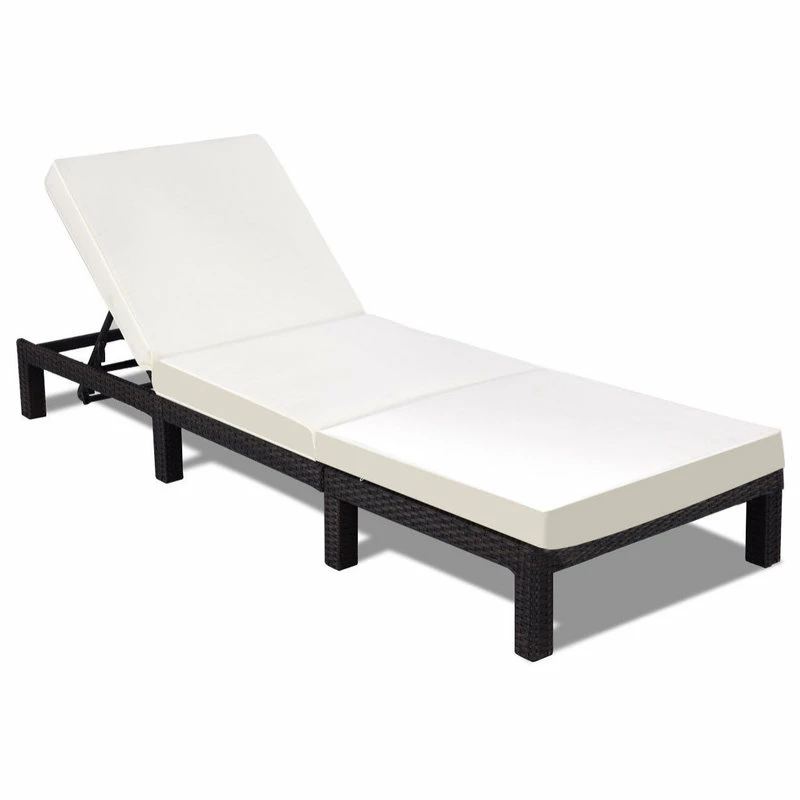 This rattan lounge chair is made of high quality PE rattan and steel which has long service life. Soft cushion which is made of sponge can provide you with comfortable seating experience. The 8 solid legs provide high bearing capacity and ensure your safety. What’s more, the reclining chair can be adjusted to 7 positions so you can choose the most comfortable angle. The lounge chair is an ideal choice for poolside, patio, porch, and seaside so you can enjoy yourself everywhere. Designed in modern and concise style, this chair is great for indoor and outdoor use and perfectly become your patio or home decor. Just spend these wonderful summer months outside with our wicker rattan lounger chair!