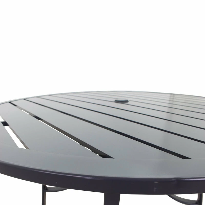- 48″ Round Dining Table with umbrella hole in dark gray: 48″ x 48″ x 27.56″