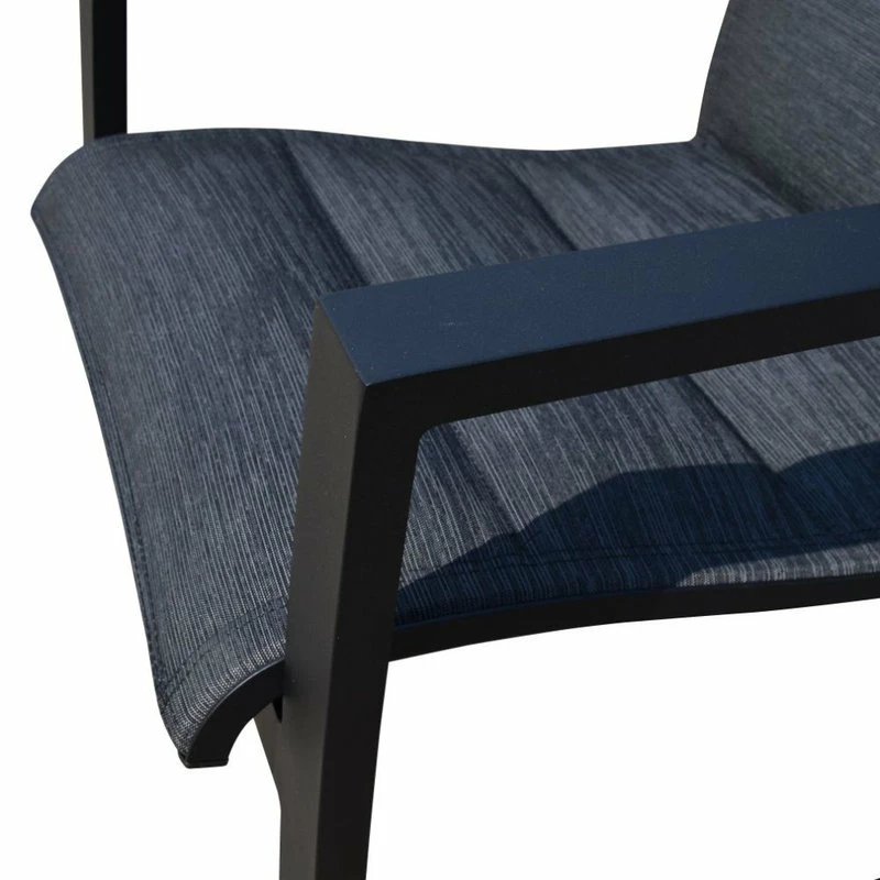 Now you have the best of both worlds in low maintenance outdoor furniture with added comfort, integrity and style. Santorini collection is built with our high grade aluminum frames and finished with premium all weather padded slings. The padded material makes the real difference with comfort and is quick drying. The channeled sewn tight weave sling material will keep the quick drying fill in place and maintain the shape for several years. Seating pieces are fully assembled. One Year Limited Manufacturer Warranty