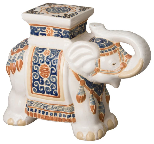 This elephant ceramic garden stool with a beige/blue glaze is the perfect touch to any indoor or outdoor space. It can be used as a small side table, an extra-seat or as a planter pedestal. This collection offers the best combination of design and glazes.