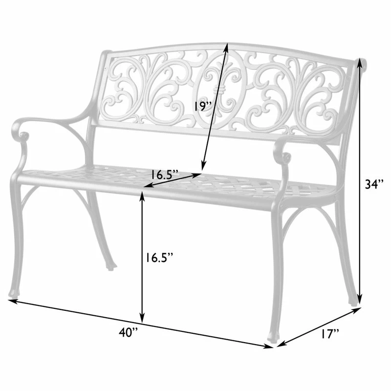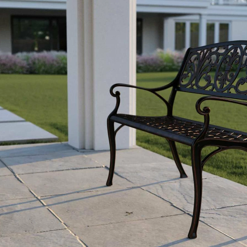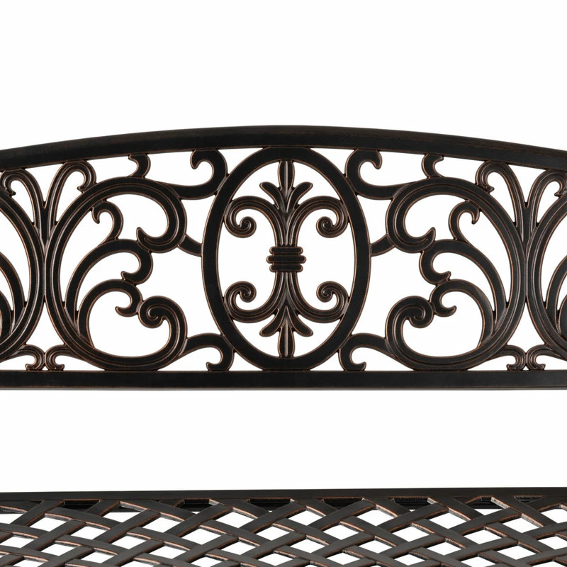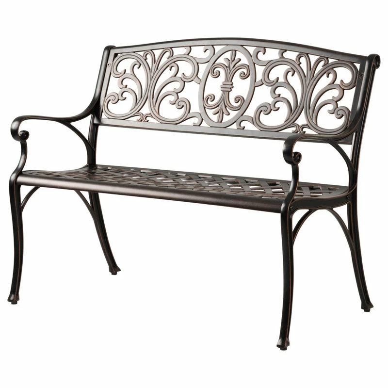 Enjoy the classic beauty of cast iron but the maintenance-free experience of durable solid aluminum. The elegant Decatur Patio Bench by Patio Sense is constructed of cast aluminum in our unique antique bronze finish. This lightweight yet sturdy bench is perfect for a relaxing pause in the garden or your backyard patio. The attractive fleur-de-lis design with antique bronze finish is the perfect year-round accent for any patio or garden setting.
