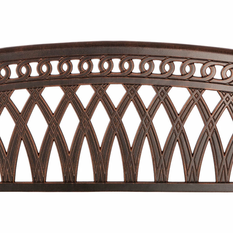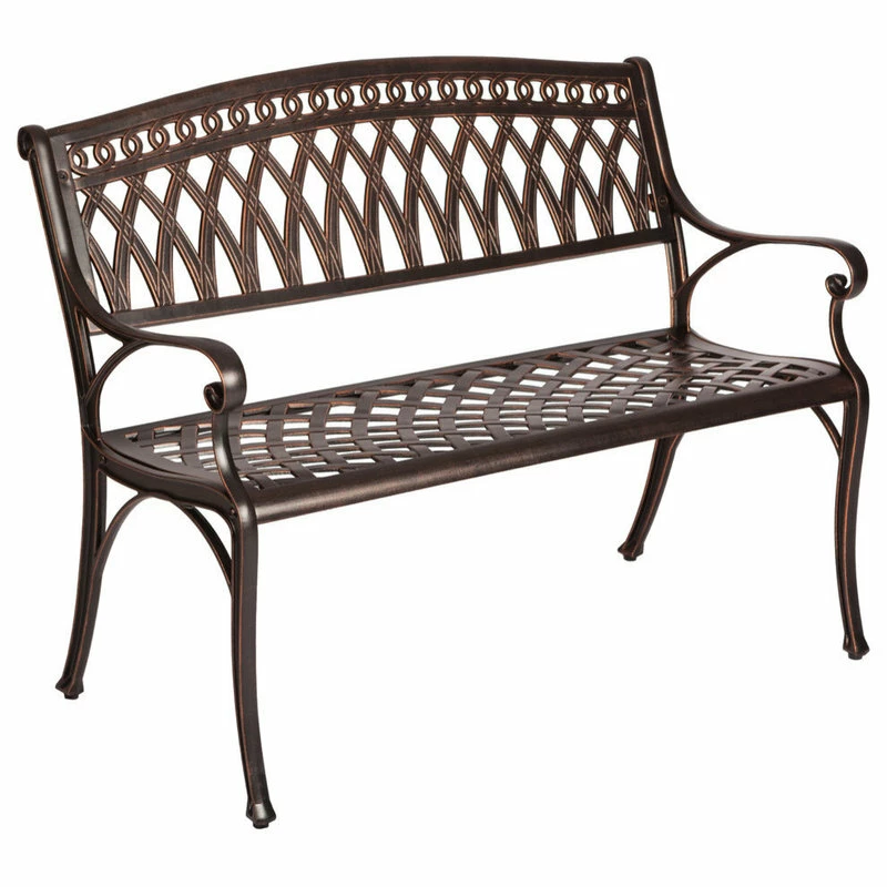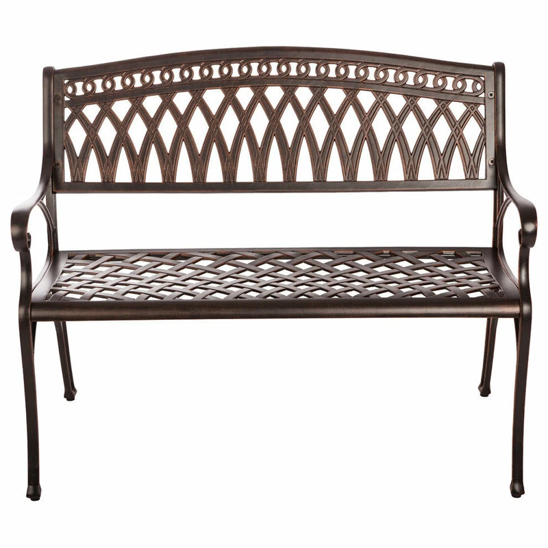 The new Simone Cast Aluminum Patio Bench is constructed of cast aluminum with our unique antique bronze finish. This lightweight yet durable bench is perfect for relaxing in the garden or your backyard patio. The attractive antique bronze finish is the perfect accent for any patio. The Patio Bench can be used all year round and provides a maintenance free outdoor seating experience.