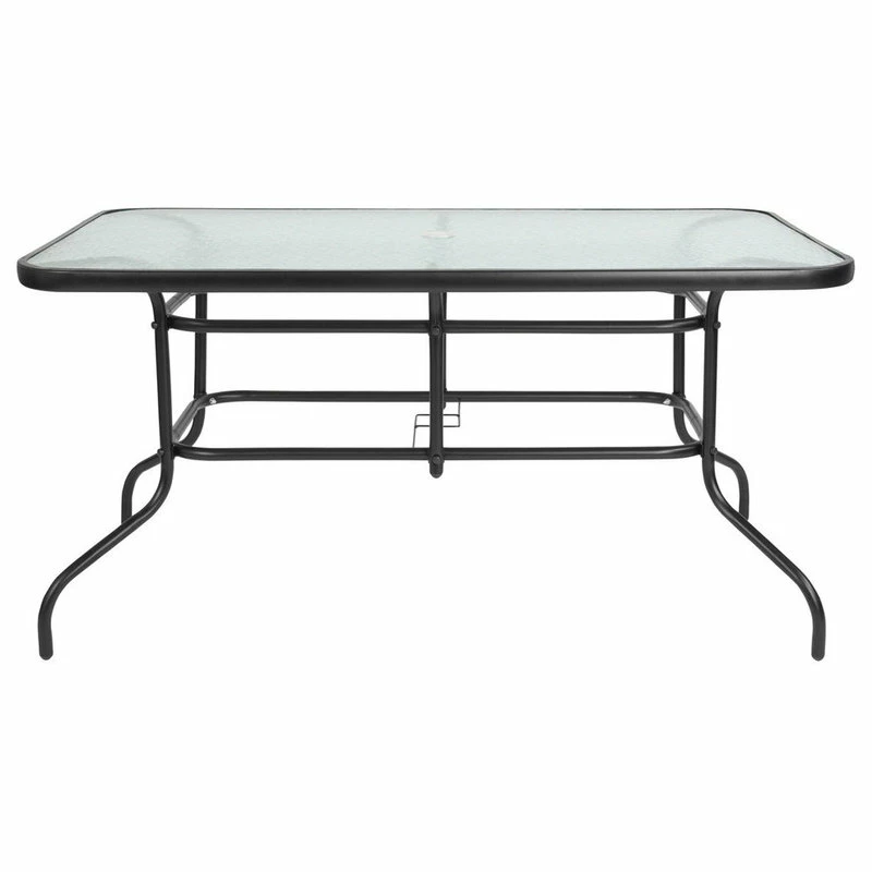 Create the perfect relaxing or entertainment environment with this patio table. This glass table will enhance your bistro, cafe, restaurant, hotel or home patio space. The ripple designed table top features a smooth surface for keeping items level. The rectangular shaped top will accommodate a family for outdoor dining and casual gatherings. The table was designed for all-weather use making it a great option for indoor and outdoor settings. For longevity, care should be taken to protect from long periods of wet weather. [TLH-089-GG]