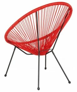 The woven basket Rattan Lounge Chair provides comfort with a standout, stylish appearance. The oval shaped opening beckons you. An addition of a colorful toss pillow will enhance the look. Rattan and steel material provide durability to hold up throughout the years. Plastic floor glides will protect your interior floors. For quick and easy storage, you may stack these chairs up to four high. Lounge in the comfort of your home or on the patio on a warm and sunny day. For longevity, care should be taken to protect from long periods of direct sunlight and wet weather. [TLH-094-RED-GG] Overal Dimensions: 29″W x 30.25″D x 35.25″H