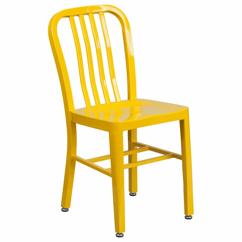 Update the look in your home or restaurant using this modern industrial style chair. Don’t be afraid to add some color to brighten up your kitchen, bar or man cave. This all-weather use chair is great for indoor and outdoor settings. For longevity, care should be taken to protect from long periods of wet weather. This easy to clean chair makes it the perfect option for any eatery while adding a burst of color. [CH-61200-18-YL-GG]