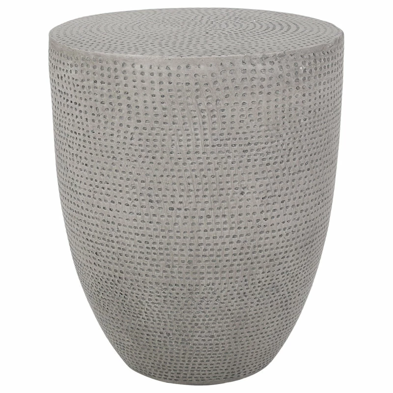 Restore your outdoor space with refined aesthetics by bringing home the perfect accessory for your decor. With a smooth lightweight concrete structure and modern touch, our side table offers high durability and stunning looks for your backyard or patio. Perfect as an end table next to your chat set or sectional, this piece will hold any snacks or chilled drinks in sophisticated grace. Finished with a rounded tapered cylindrical shape and hammered texture, this table is a seamless addition to any space.