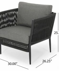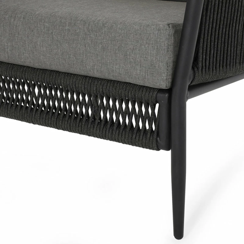 Tie your outdoor space together with dazzling textures and exquisite design. This set of club chairs brings together stunning, hand-crafted rope weave with smooth aluminum frames to create a sleek and comfortable space for your home. This chair set provides delightfully plush water-resistant cushions for the utmost comfort that offers effortless relaxation throughout the summer season. With sturdy, solid frames, tapered legs, and beautifully textured design, these chairs will have no problem blending into your outdoor decor with its modern style and incredible durability.