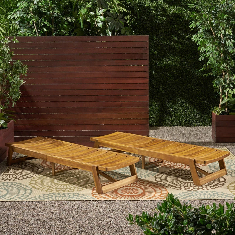 Enjoy the delights of summer in your own backyard with a chaise lounge set that is perfect for patio and poolside use. Ideal for family and friends alike, these chairs will have everyone unwinding under the warm sun for hours. From stylish comfort to sleek outdoor furnishing, this lounge chair set offers you outstanding coziness with its adjustable seating and breathable slat design. With its acacia wood frame and metal accents, our lounge chairs effortlessly bring the perks of summer straight to you.