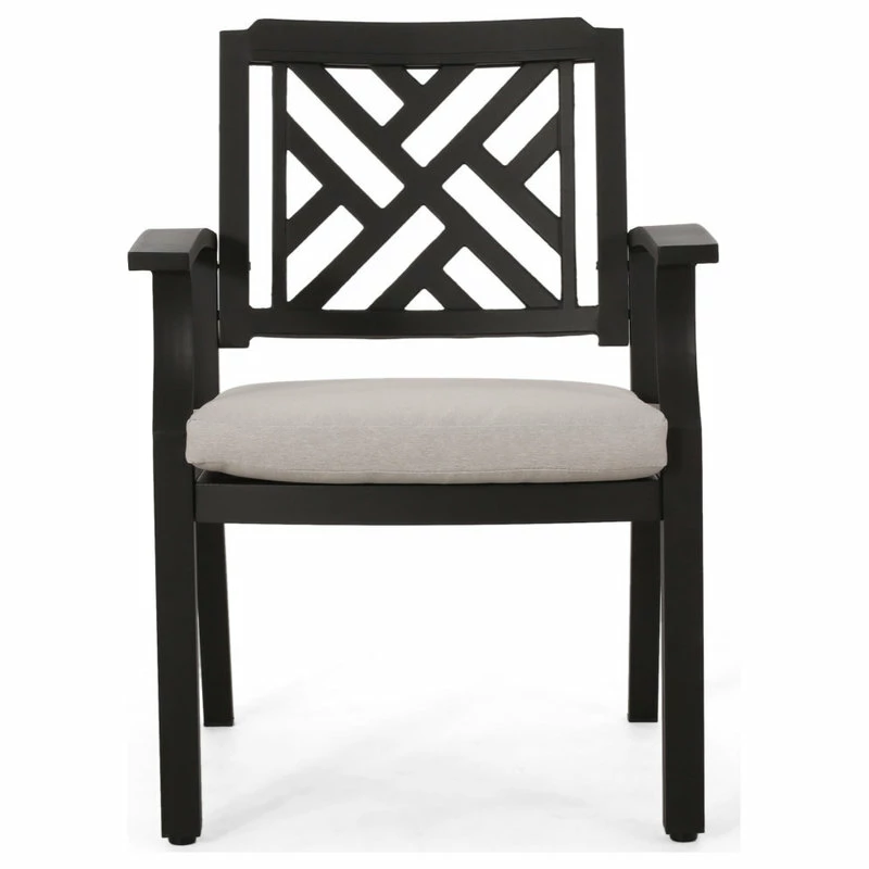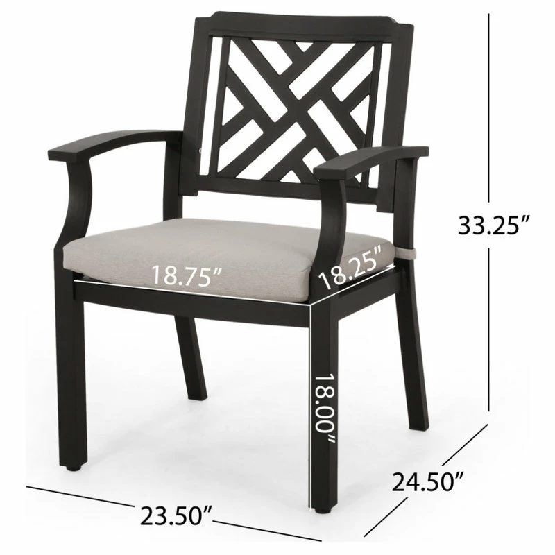Fashion any outdoor dining area with seating that is sure to transform your space with style and comfort. Built with sleek aluminum frames, our dining chair set not only offers a modern touch with its charming design but it also showcases outstanding durability. This is finished with plush, water-resistant cushions which bring refreshing comfort and style to your summer lounging. Perfect to pair with a variety of dining tables, these dining chairs are sure to bring your outdoor space to the next level.