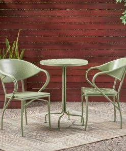 Summer dining is an easy feat with the help of our charming three-piece bistro set. Featuring gorgeously curved frames and an outstanding crackle finish, our bistro set offers a timeless yet modern style for your backyard while providing ultimate comfort. This set offers your outdoor space cozy seating with its smooth, rounded frames and enclosed armrests. Complemented by a slatted table, this lovely set not only brings your patio an upgraded look but is also made to last with its durable structure.