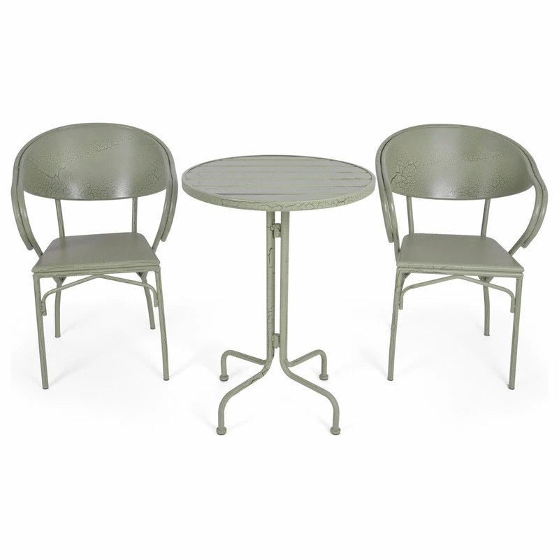 MODERN: With delightful crackle texture contrasted perfectly by its rounded edges, our bistro set is the ideal modern accessory for your outdoor space. Finished with a slatted tabletop, this set not only has a sleek, minimalistic look but also provides a stable structure.