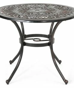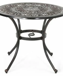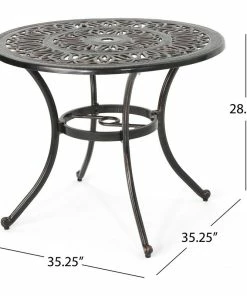 What’s a delectable meal without an equally exquisite surface to lay it down upon? Set the stage for suppertimes on a surface that will scarcely be beaten elsewhere; this cast-iron aluminum dining table’s organic curves and elegantly cut-out design are too beautiful to cover up with a tablecloth. Treated with a powder coating specially formulated to ward off the possibility of rust and tarnish, this selection is tough enough to last, providing the perfect place to make memories for years to come.