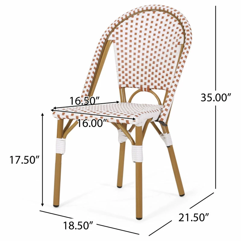Add a breezy finishing touch to your patio space that provides the perfect spot for you and your guests to enjoy. Built with bamboo finished aluminum frames, this chair set not only offers a natural touch with its charming design but it showcases also outstanding durability. The seat and backrests are finished with stunning wicker which brings refreshing breathability and style to your summer lounging. Perfect to pair with a side table or your favorite bistro table, these accent chairs are sure to bring your outdoor space to the next level.