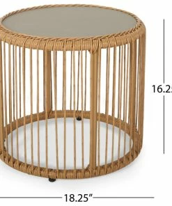 MODERN BOHO: With straight, clean lines contrasted perfectly by its round edges, our side table is the ideal modern boho accessory for your outdoor space. Finished with a gorgeous rattan weaving, this piece not only offers a sleek, minimalistic look but also provides a stable structure.