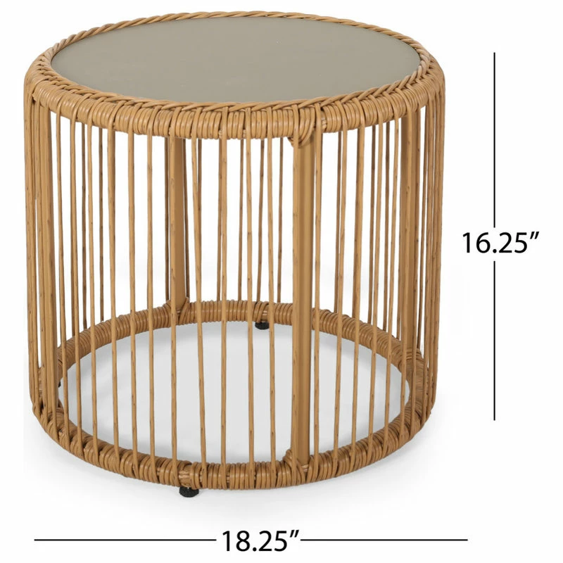 Keep hydrated this summer with the help of our stylish side table that will your keep your drink conveniently on hand throughout this sunny season. With its charming open drum design and smooth wicker finish, this side table is an excellent sidekick to your outdoor furniture, ideal for holding a tray of snacks or a cool pitcher of lemonade. Featuring an iron frame and edgy modern boho design, our side table will keep your patio in style all summer long.