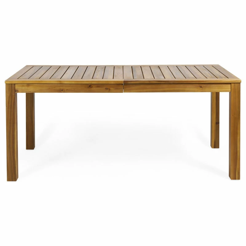 An ideal combination of function and style, our table is perfect for any outdoor space. Pair it with your favorite set of chairs or coordinate it with a variety of seating choices for a unique and personalized look. This table is made with rich acacia wood and classic slat paneling, allowing you to create your perfect dining setup. Its delightful rustic design provides incredible stability that won’t just blend with your existing decor but will bring out the best of your backyard or patio space.