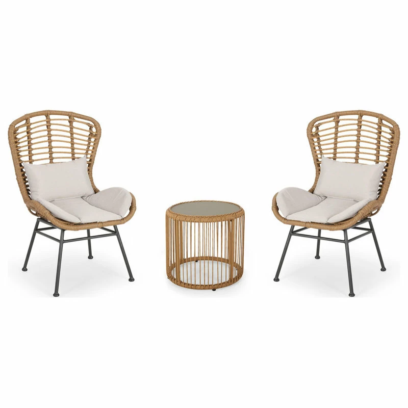 MODERN BOHO: With clean lines contrasted perfectly by its round edges, our chat set is the ideal modern boho accessory for your outdoor space. Finished with a variety of gorgeous rattan weaving, this set not only offers a sleek, minimalistic look but also provides a stable structure.