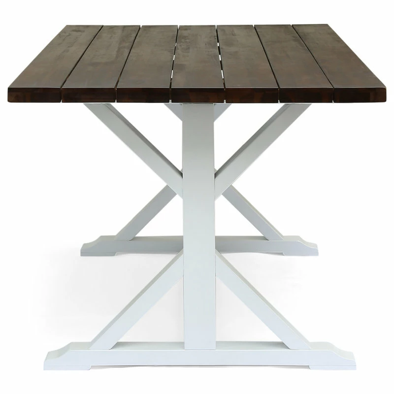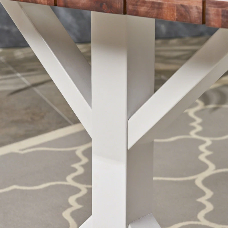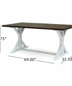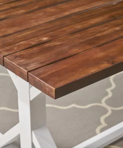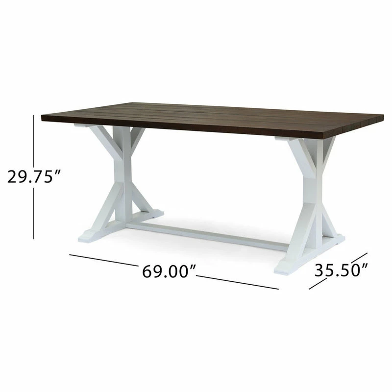 The dining table is the heart of the home; imbue your living space with warm, humble charm. This rustic yet contemporary selection offers your yard a stylish dual-toned motif, its solid acacia wood frame sporting bright white legs with a smooth and easy-to-clean table top boasting a deep brown hue. Embodying a perfect blend of practical farmhouse functionality and clean, modern design, this update on a classic concept will tie your deck or patio together gracefully and set the perfect tone for breakfast, lunch, and dinner alike.