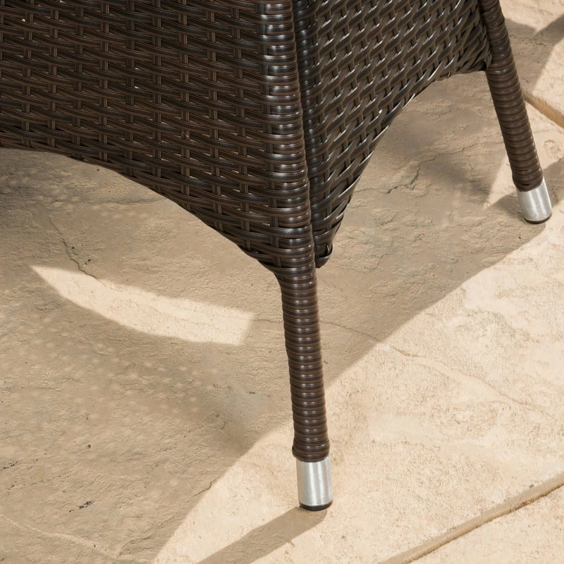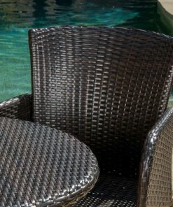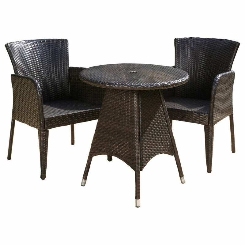 Dress up your patio or backyard with Corsica Multi-Brown Round 3pc Bistro Set. These brown chairs are made of durable Iron and PE wicker and are weather and UV resistant.