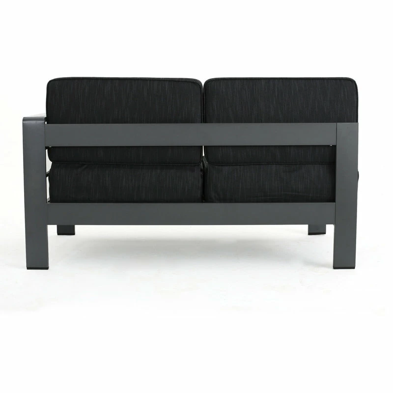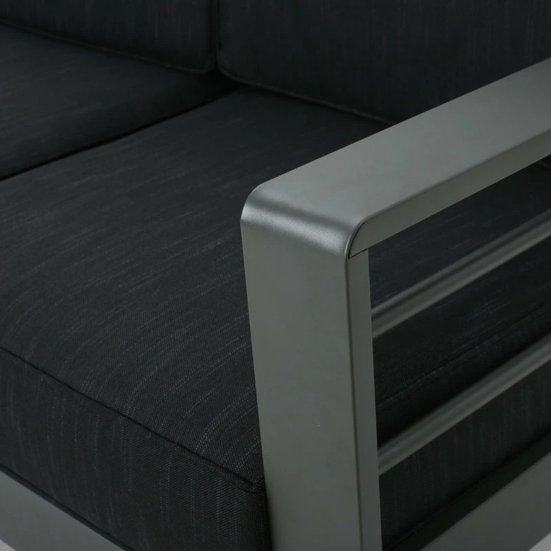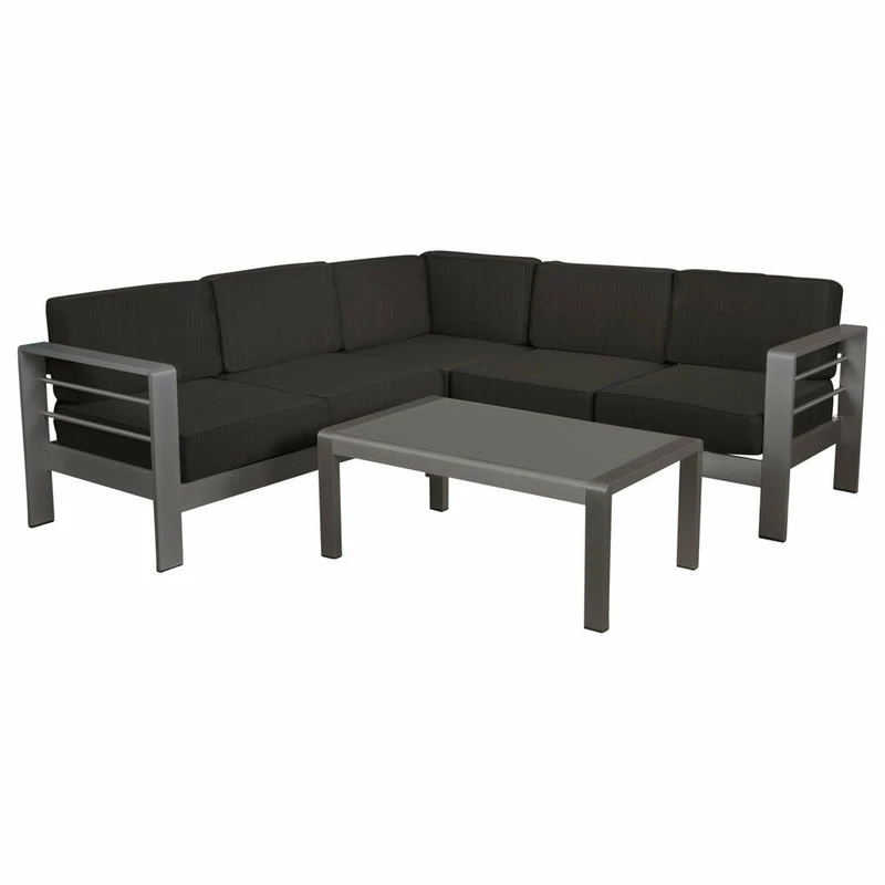 Enjoy the great outdoors with the perfect seating ensemble. With clean lines and durable aluminum frames, our five-seater sectional chat set is made for both durability and comfort. This set also offers generous seating space around a matching tempered glass top coffee table. Choose between Sunbrella or water-resistant cushions for long-lasting comfort that is sure to impress. Free khaki water-resistant covers arrive on the cushions with all Sunbrella orders. Sunbrella covers will be shipped separately and should arrive within 72 hours of your set.